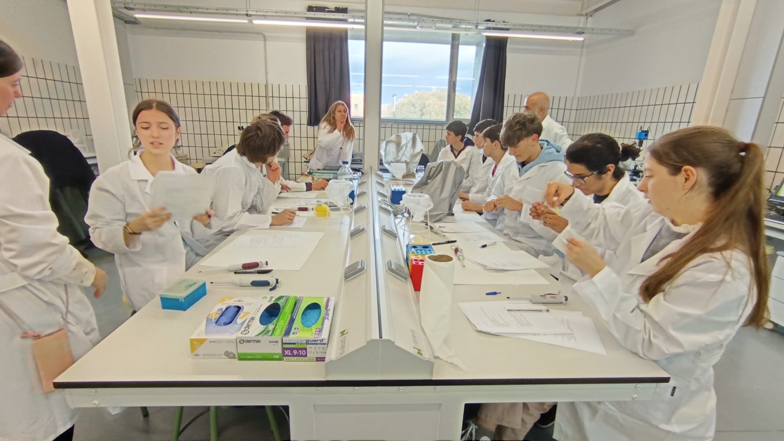 Los diez alumnos mejor clasificados en la prueba teórica de 2º de BTO. pasan a la fase práctica que se realizó el viernes siguiente, día 13 de febrero. Dicha prueba consistió en dos experimentos de laboratorio: