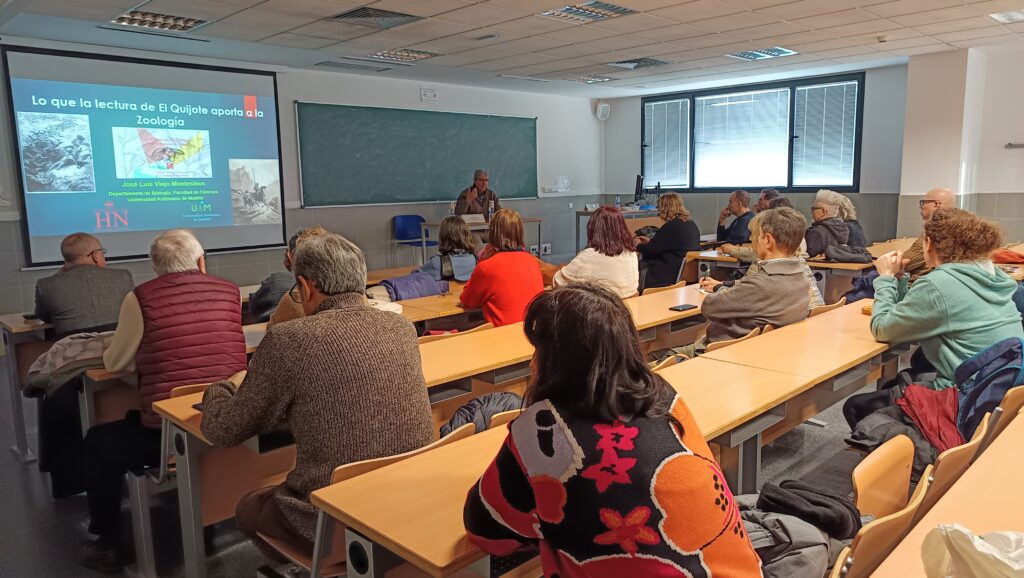 El viernes 13 de febrero, el Catedrático Emérito de Zoología de la UAM D. José Luis Viejo Montesinos impartió la conferencia llamada «Lo que la lectura de El Quijote aporta a la Zoología».