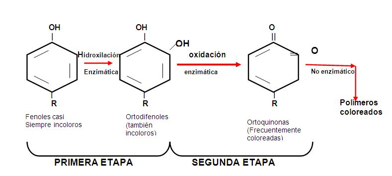La polifenol oxidasa actúa como un catalizador: toma los polifenoles y, con la ayuda del oxígeno del aire, los transforma en unas moléculas intermedias llamadas quinonas. Estas quinonas son muy reactivas e inestables, por lo que rápidamente se combinan entre sí y con otras moléculas cercanas, formando polímeros de gran tamaño denominados melaninas (sí, parientes lejanas del pigmento que da color a nuestra piel). Son precisamente estas melaninas las responsables del característico color marrón oscuro que observamos en la superficie cortada.